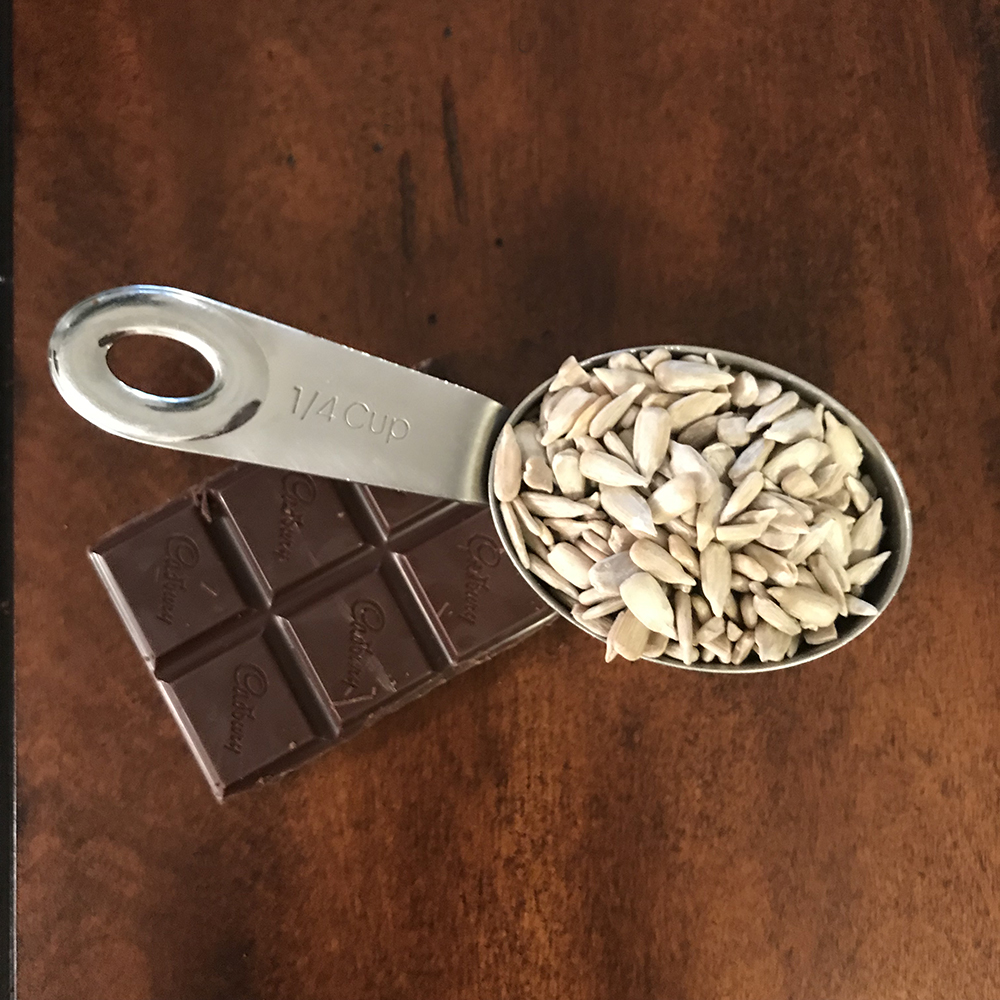 - Also include dark chocolate, it too has serotonin; 6 little squares in the morning for breakfast, along with the sunflower seeds, seems like a magic formula for leaving the house in a great mood